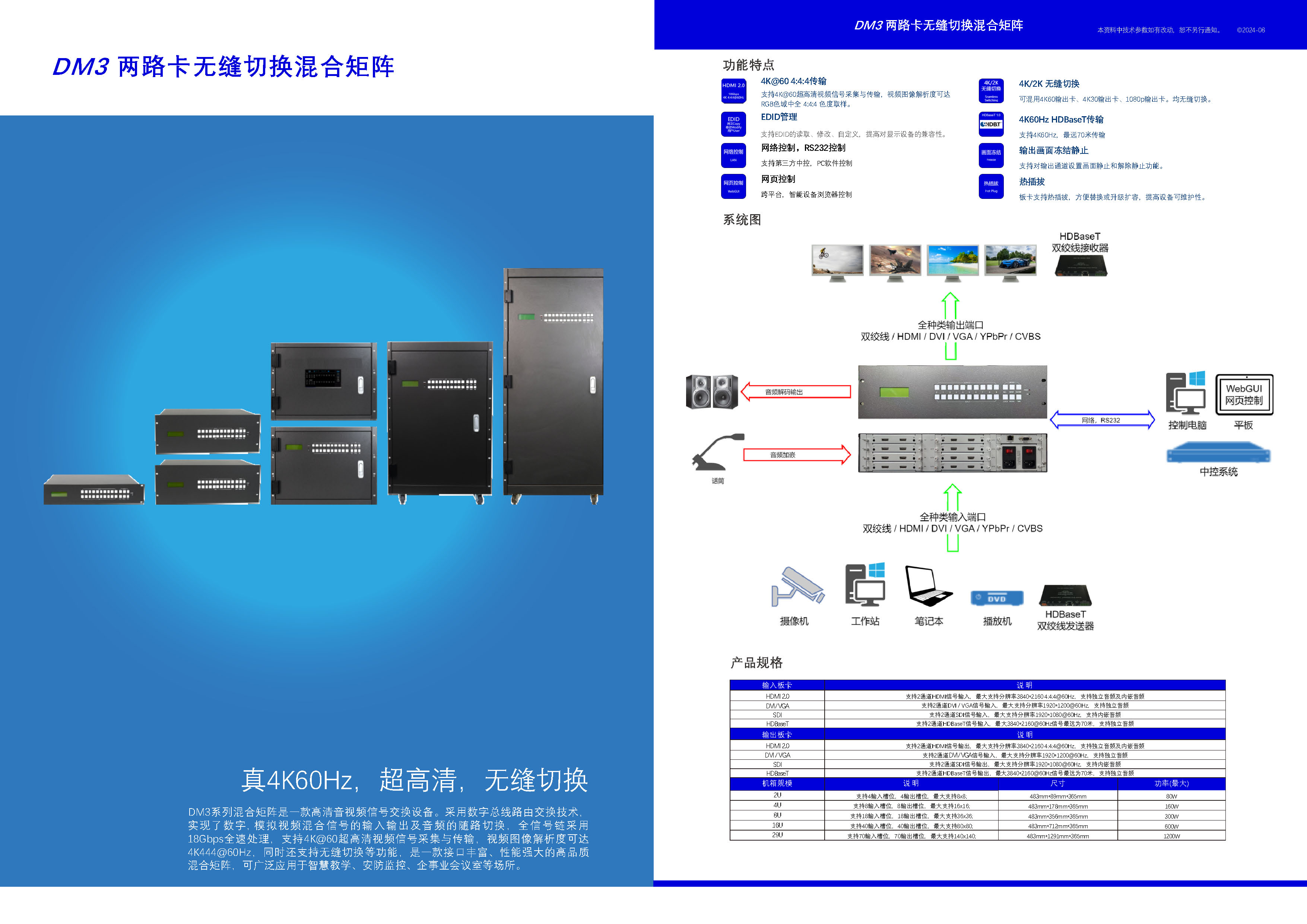 【DM0808/DM1616/DM3636/DM8080:8x8~80x80插卡式无缝切换拼接矩阵】
