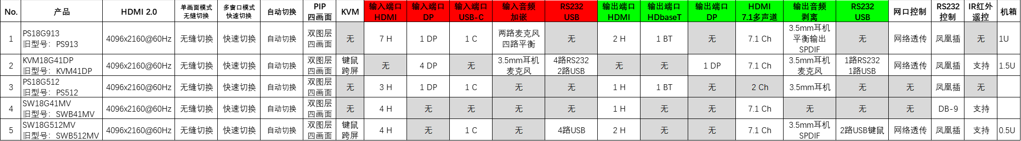 【无缝切换+画面分割+格式转换:PS913/ KVM913/ PS512/ SWB41MV/ KVM41DP/ SWB512MV】