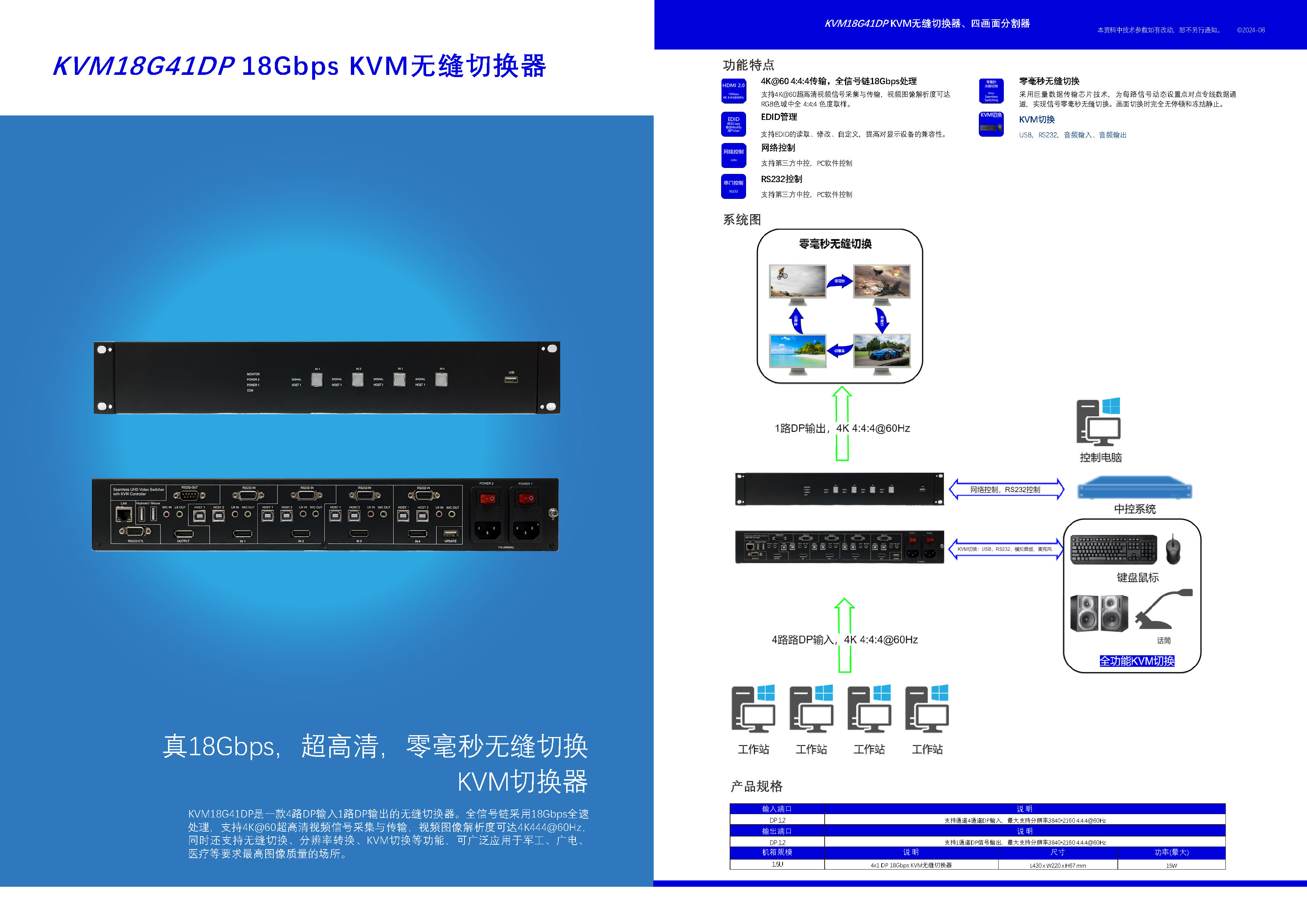 【无缝切换+画面分割+格式转换:PS18G913/512,KVM18G913/512/41DP,SW18G41MV/512MV】 【旧型号:PS913/ KVM913/ PS512/ SWB41MV/ KVM41DP/ SWB512MV】