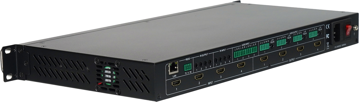 VM4K6044H4:4x4 4K30无缝切换拼接矩阵 1、视觉无损图像处理 2、真4K60Hz 3、点对点处理,支持任意分辨率小间距 4、液晶拼接:跨屏同步